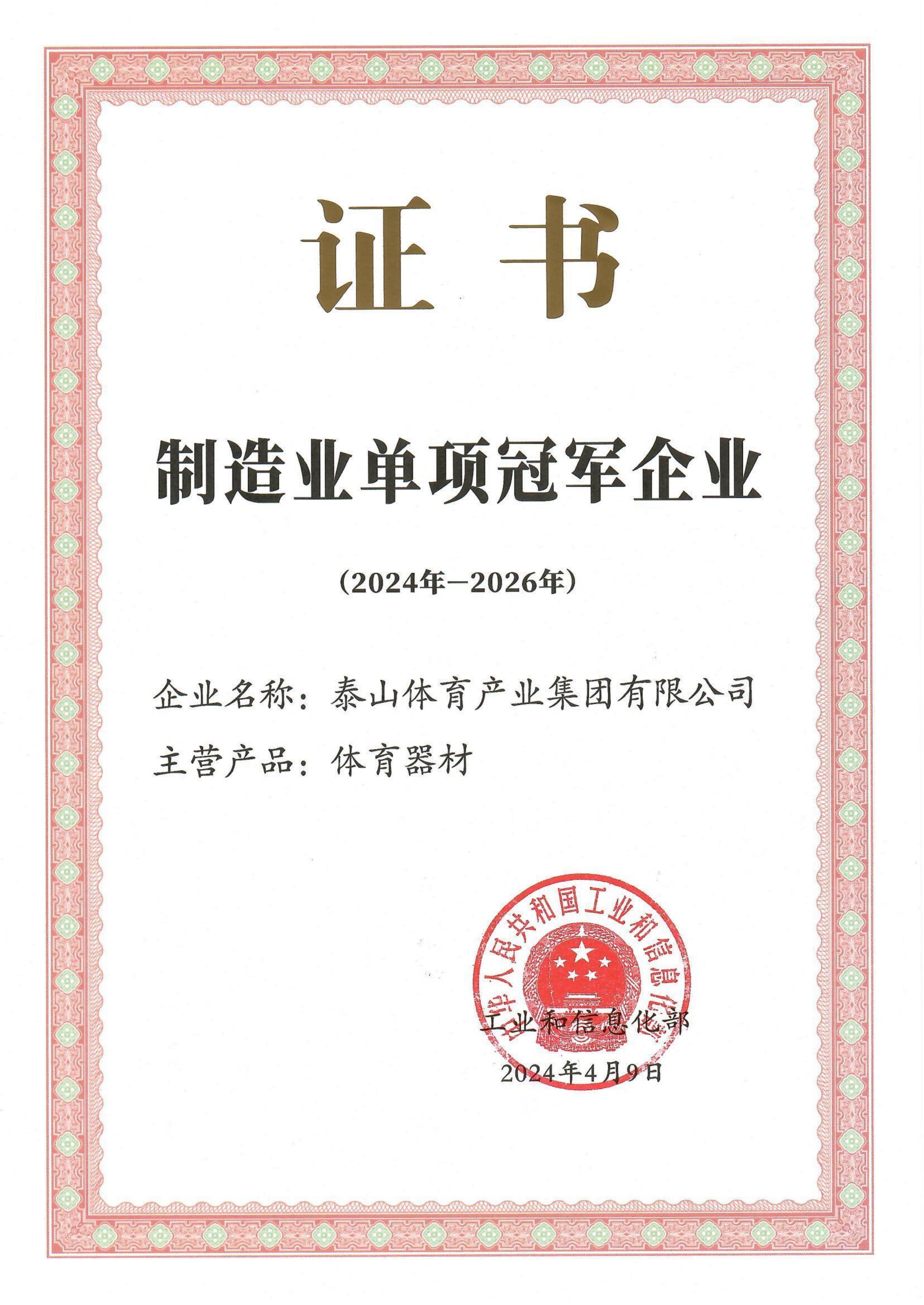 泰山集团践行诚信经营发展理念,坚持做好人品,做好产品,以工匠精神打造中国体育产业的民族品牌。