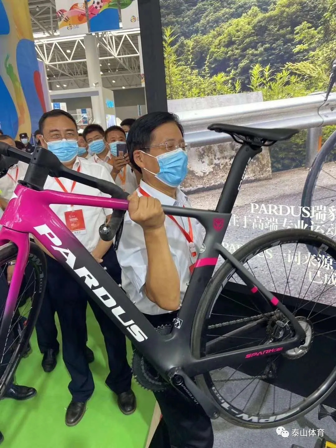 随后,山东省副省长孙继业一行在泰山集团常务副总裁卞国峰的陪同下来到星空·综合体育所在场馆进行详细考察,对于泰山瑞豹碳纤维自行车、星空·综合体育工程等产品与项目进行深入了解。期间,孙继业副省长饶有兴致的对于泰山瑞豹进行详细了解,特别关注获得"中国优秀工业设计奖金奖"的泰山瑞豹全碳变速互换计时车产品的具体情况,并亲自单手提起具有奥运赛场征战经验的碳纤维自行车。他表示:"山东省委省政府将积极推动体育产业列入我省的支柱产业,鼓励企业制定长期发展战略规划,通过打造体育产业龙头企业,形成一个迅速爆发的体育产业生态。期待泰山集团充分发挥自身国际资源、科技创新、标准制定等核心优势,不断做大做强,让山东体育产业的优势地位凸显的淋漓尽致,形成山东体育产业集群。"
