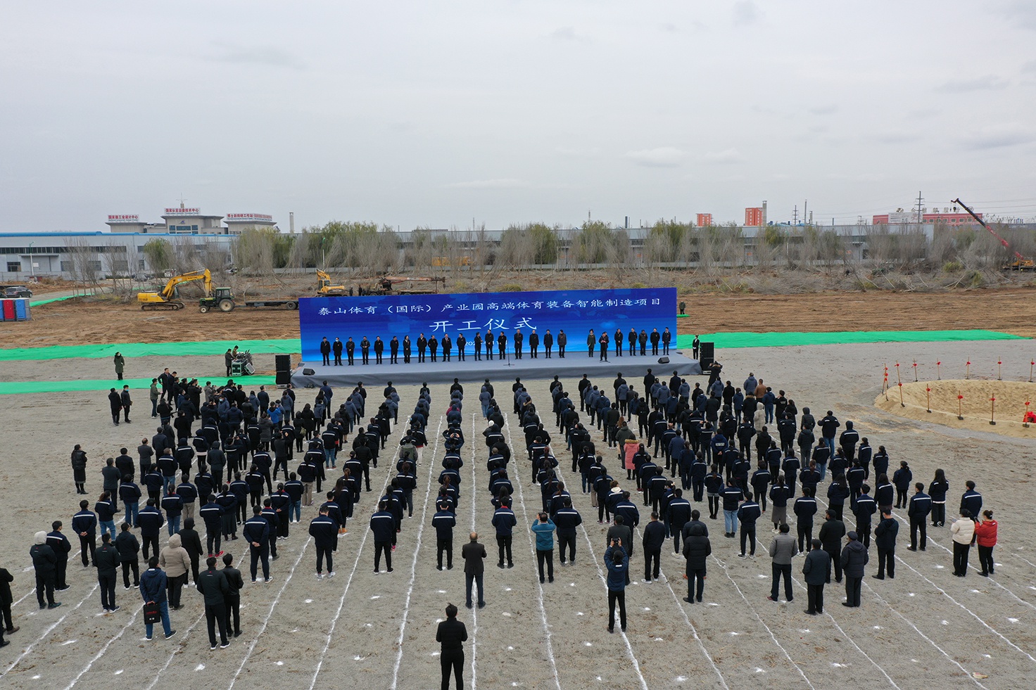 为坚定不移走制造强国、质量强国、网络强国、数字中国路线,推进体育产业基础高级化、产业链现代化,提高品牌核心竞争力,响应“健康中国”“体育强国”国家战略号召,积极落实山东省委省政府做大做强民族体育品牌的指示,为发展体育产业聚势赋能,11月26日,星空·综合体育(国际)产业园高端体育装备智能制造项目开工仪式在泰山集团举行。中国体育用品业联合会主席李桦、山东省体育局副局长王延奎、山东省工信厅二级巡视员李向东、中国农业银行山东省分行副巡视员宋红光、山东大学体育学院党委常务副书记郭学庆、德州市政协主席翟长生、德州市政协秘书长魏增新、中国农业银行德州分行行长田树江,德州市及乐陵市有关部门主要负责同志出席仪式。乐陵市委书记樊廷雷主持开工仪式并发表致辞。