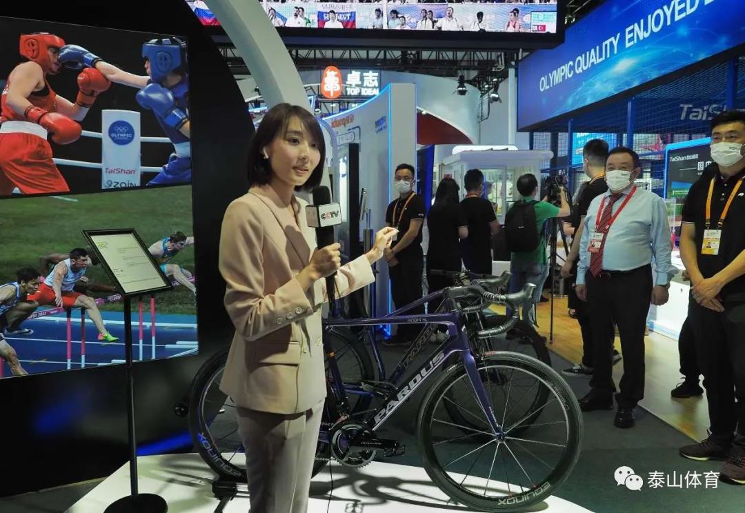 央视新闻频道消博会专题现场直播来到星空·综合体育展厅,央视新闻记者宋菀在泰山瑞豹运动自行车展位单手感受泰山瑞豹碳纤维自行车的轻量化高刚性的“黑科技”高性能,圈粉无数。