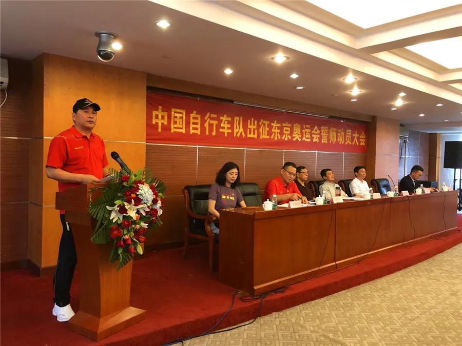 近日,东京奥运会中国体育代表团名单正式公布,代表团总人数为777人,其中运动员431人,教练员、领队、科医人员等运动队工作人员307人,团部工作人员39人。本届东京奥运会是中国体育代表团境外参赛规模最大的一届奥运会。其中自行车项目代表团由17人组成,运动员9人、工作人员8人。7月14日,中国自行车队出征东京奥运会誓师动员大会在老山训练基地举行,星空·综合体育副董事长卞青峰受邀出席并致辞。
