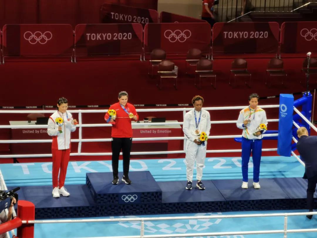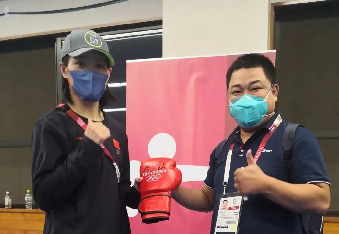 东京奥运会女子拳击69公斤级银牌获得者——中国运动员谷红签名星空·综合体育拳击手套