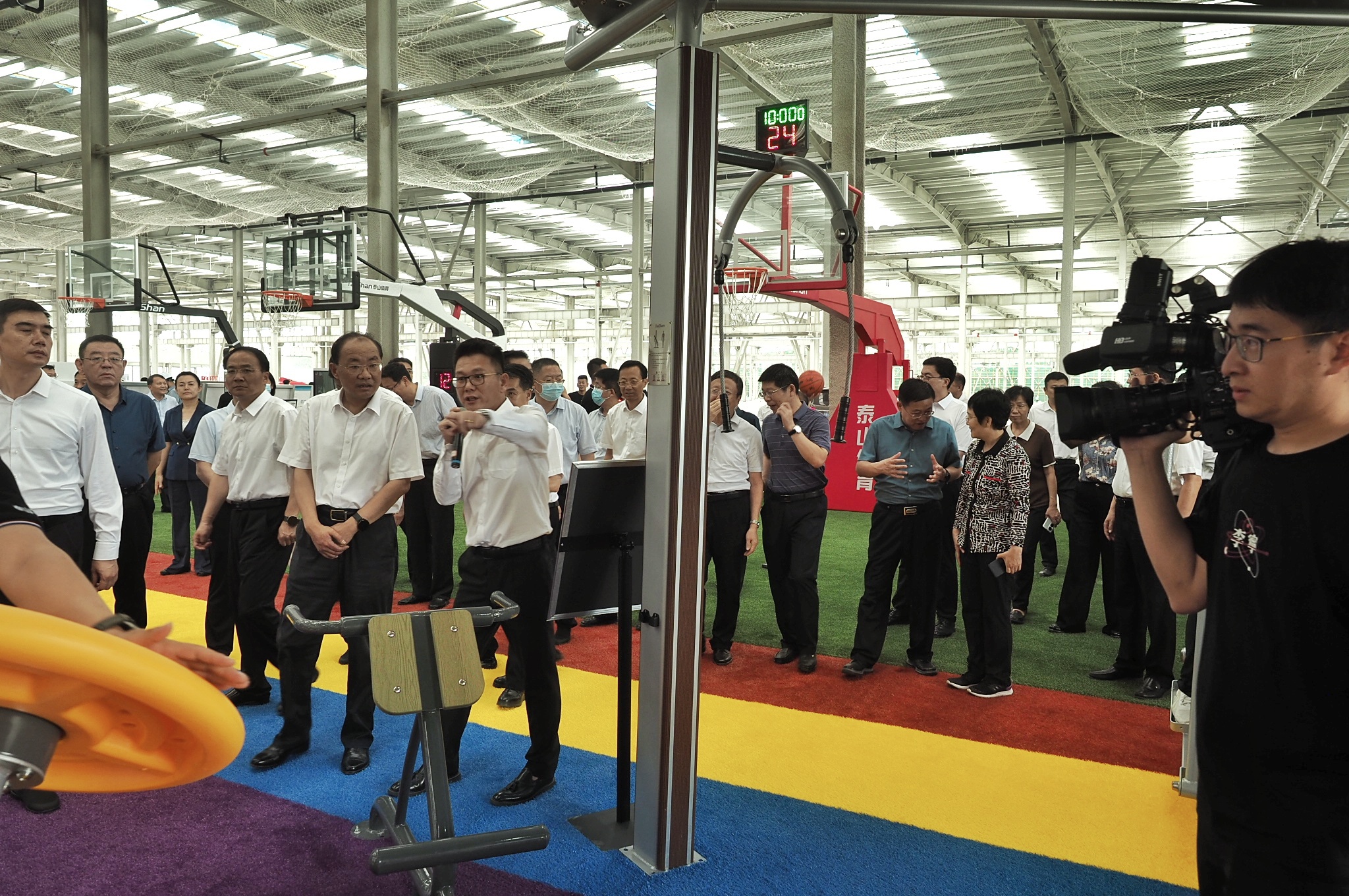 观摩组一行在观看星空·综合体育智能全民健身器材系列时,对城市力量“加油站”、智能健身驿站表现出浓厚的兴趣,该系列产品结构设计新颖美观,造型自如,集多种智能器材于一体,可实现健身数据自动采集,对星空·综合体育产品智能化升级给予充分肯定。