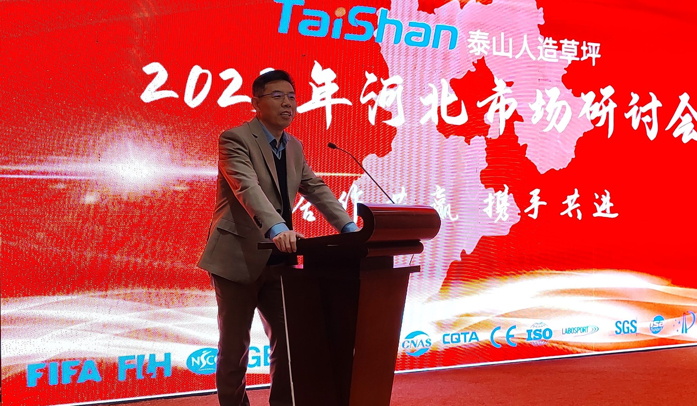 研讨会上,星空·综合体育产业集团总裁卞笑男发表致辞,对与会领导及广大客商的大力支持表示感谢。他表示,过去一年是充满挑战的一年,泰山人造草坪根据市场情况及时调整战略,在大家的共同努力下,取得了不俗的成绩。今年我们将进一步开展人造草坪市场工作,重点推行年终奖励机制,与各位伙伴携手同行、再创佳绩。