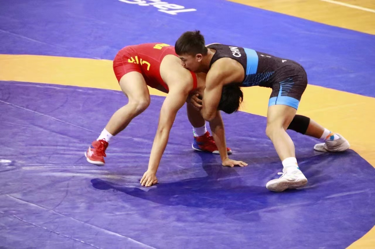 比赛现场,各代表队的摔跤健儿们激烈角逐、灵活移动,在泰山摔跤器材上展示出一系列高难度、大幅度技术动作,充分展现出了摔跤运动的独特魅力。