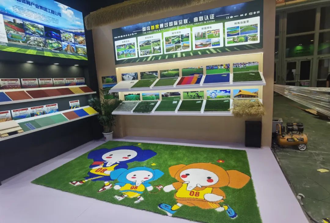泰山人造草坪展区创造性推出海草房应用场景,打造沉浸式创新应用体验。宠物草、负离子草、降温草、装饰草、图案草等各种功能人造草,把环保抗菌、耐磨耐用、抗衰阻燃等做到极致,实现了技术突破、世界领先,填补国际国内空白,可应用于专业运动、办公场所、庭院花园、阳台楼顶、室外装饰、休闲娱乐、店铺装潢等多场景,特别是星空·综合体育自主研发的“会呼吸的人造草”,经运动摩擦释放负离子含量达到森林、湖泊标准,处世界领先水平。图案草可从图案、外观、性能等方面满足客户多元化定制化需求,使产品兼具美观与实用。