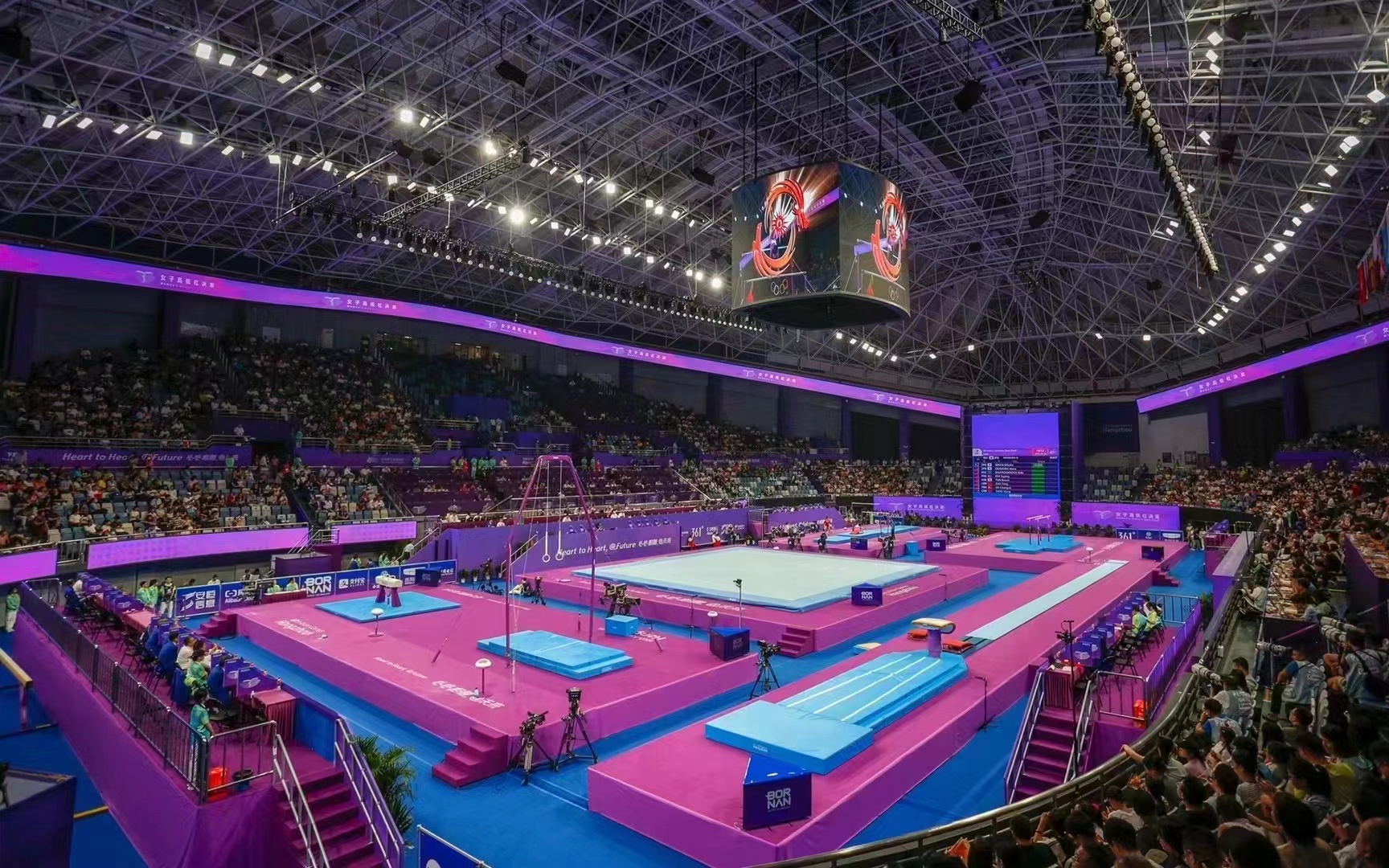 本届杭州亚运会,星空·综合体育升级赛事服务模式,科学掌控整个赛事、大数据分析比赛流程、实现快速转场、加快场地设计布局、提高对器材的检测效率,运动员训练场地、热身场地器材的科学调试及更换、男子项目和女子项目器材无缝切换等。