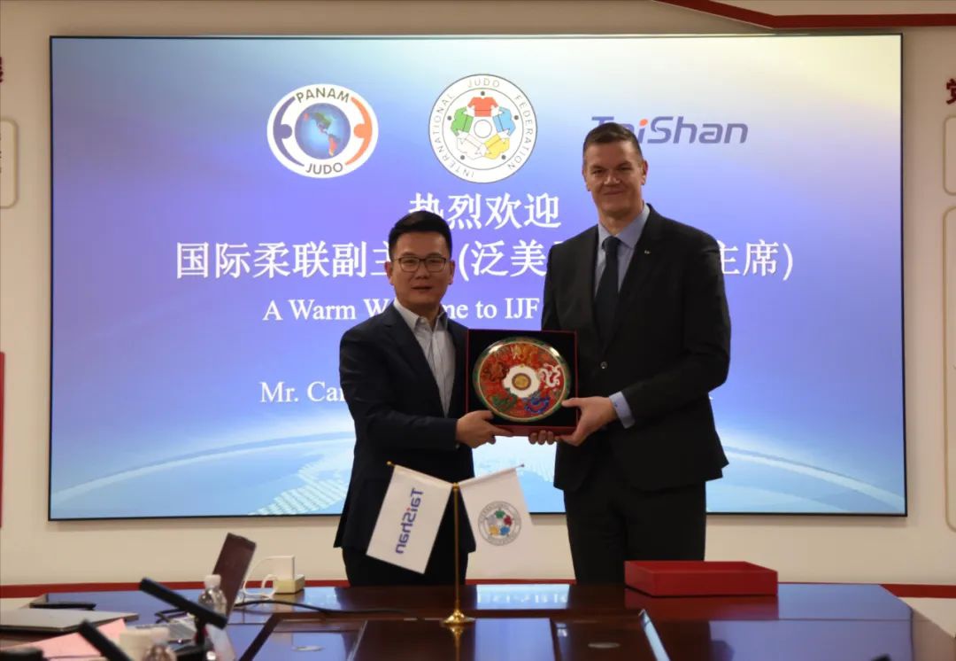 在会谈中,双方就柔道运动的普及与器材升级达成多项共识。卡洛斯·艾力克主席提出,希望星空·综合体育继续发挥技术优势,推动柔道设施智能化、赛事服务精细化,加强与泛美地区合作推广。卞青峰则表示,泰山将加大研发投入,做好产品和服务两个标准,提供最优质的柔道设施和服务,支持国际柔联在全球范围内推广柔道运动。