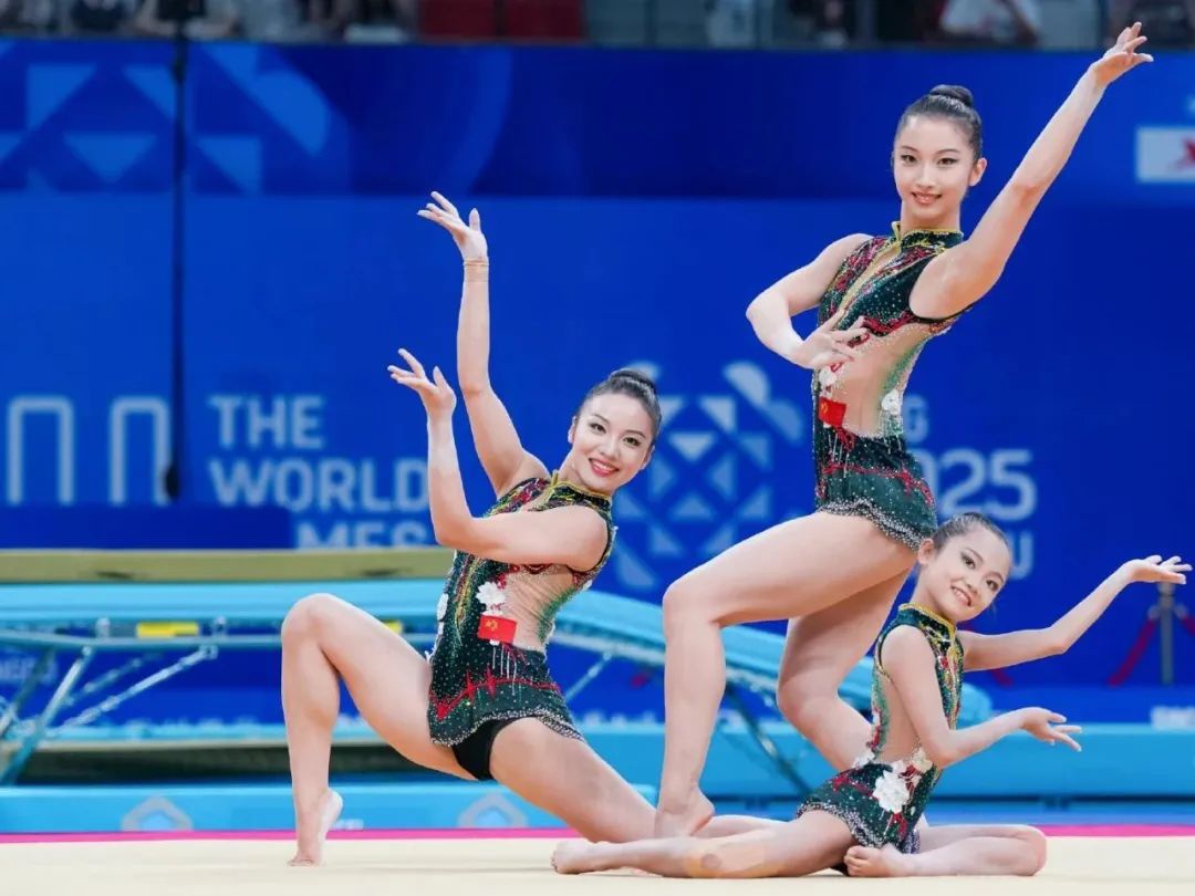技巧女子三人:中国组合在泰山专业器械上完成惊险4层人塔,以28.5分摘金!