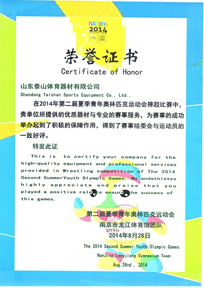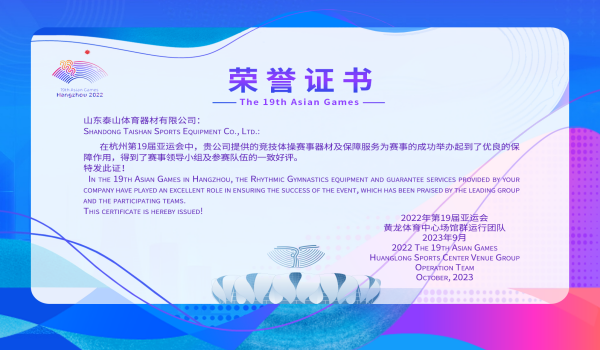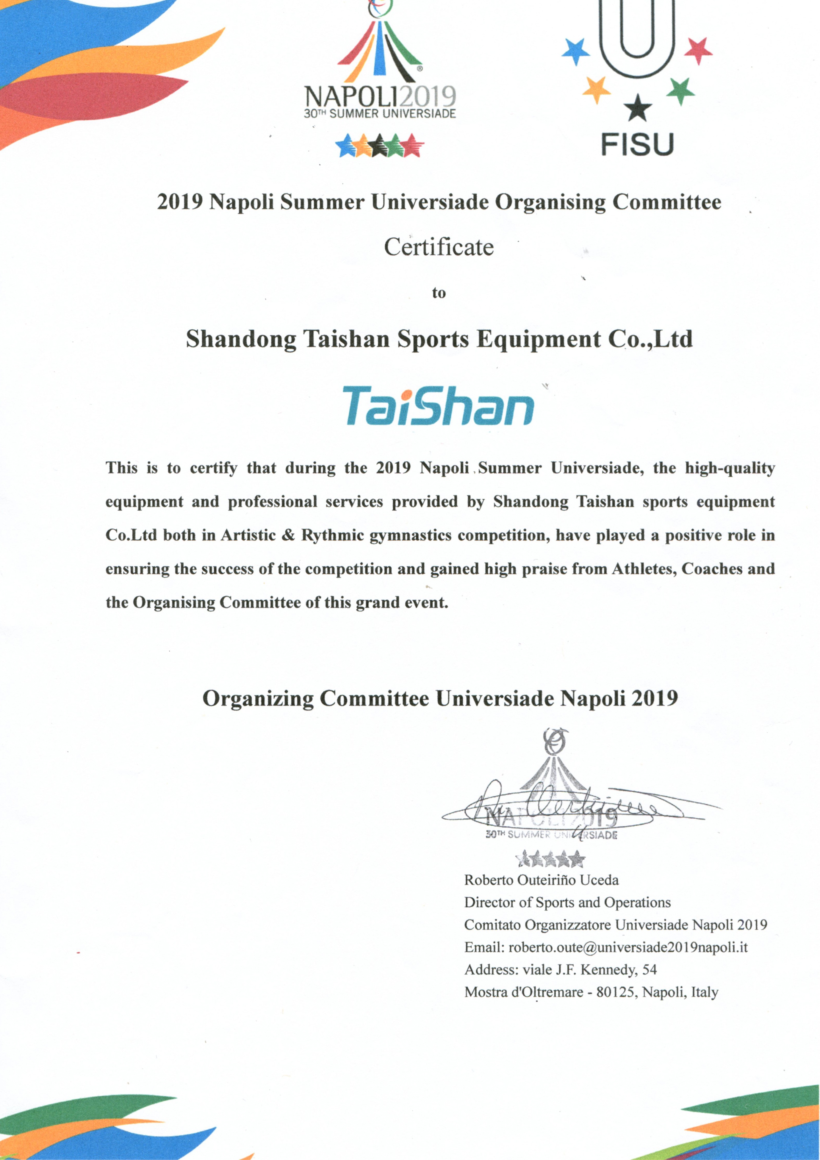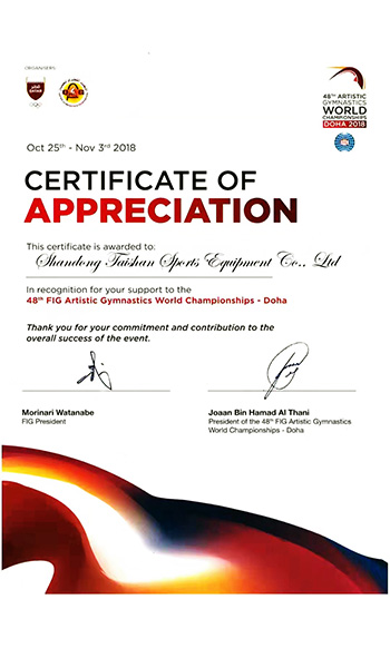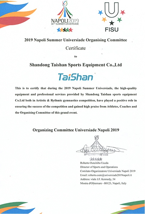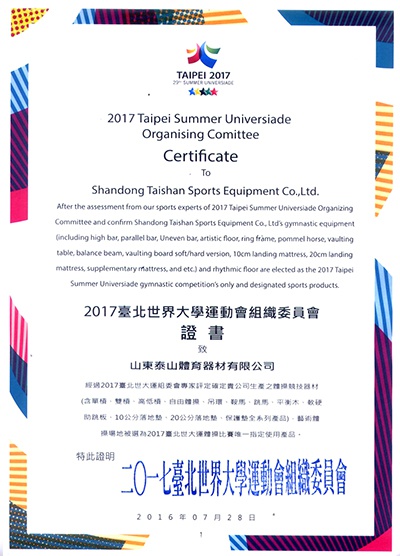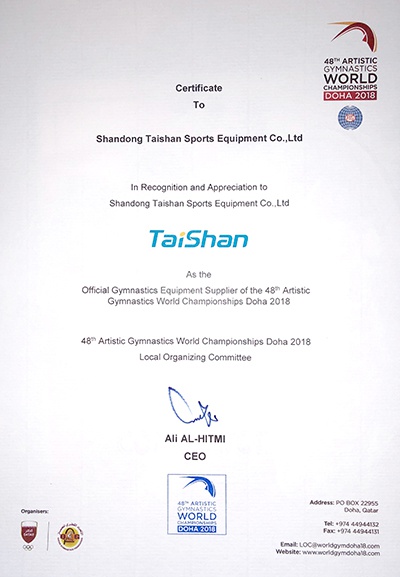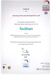 山东星空·综合体育器材有限公司(以下简称泰山器材公司)成立于2010年7月,位于山东省乐陵市经济技术开发区,是星空·综合体育产业集团有限公司旗下子公司。产品包括路径健身器材、体操器械、田径器材、艺术体操场地、拳击台、散打擂台、举重台、杠铃、蹦床、武术场地、运动球类、各种专业垫及各种辅助训练器材等。