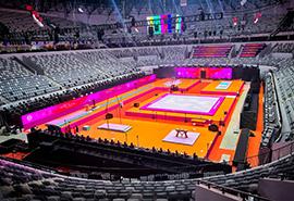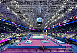 奥运品质,全民共享,产品被场景替代,产能也被生态覆盖,星空·综合体育结合50年发展的经验积累,整合智能制造、规划设计、技术研发、产品体系、上下游供应链、品牌形象、国内外资源、赛事服务等优势,逐步从竞技体育延伸到智慧校园、科学健身、全民健身、家庭健身、军警消防、儿童体适能、赛事服务、体育公园、体育综合体等九大场景领域,实现由传统的体育器材制造商,升级为全球体育健康一站式解决方案服务商。